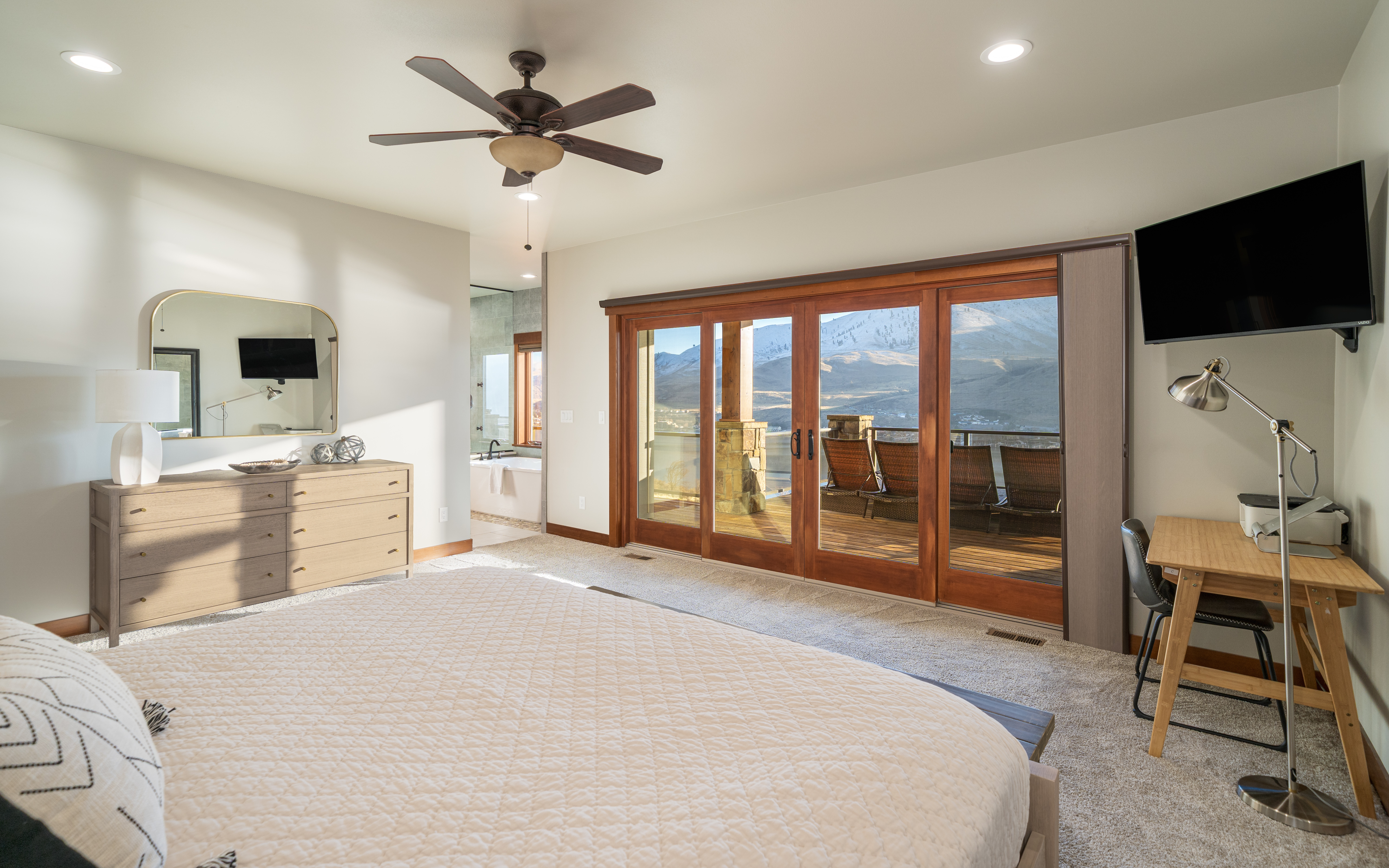 Beds/Baths 6 BR 4.5 BA 20 Guests Action Links Request info Printer-friendly version Lounge on the large deck with a panoramic viewsLakeside Bluff lives largeEvening views are spectacular Seating for 20+ with concrete table, transformer table, & bar sLarge great room with lots of seatingGourmet Kitchen with gas cooktop and 2 ovensInteriorLuxurious owner suite on the main floor with king bedLuxurious owner suite on the main floor with king bedLuxurious owner suite on the main floor with king bedOwners bath with huge soaker tub with a viewMain floor laundry roomQueen bed with XL twin bunkMain floor king bedroom with adjoining bathroomMain floor king bedroom with adjoining bathroomMain floor full bathroomTheater with 10ft. screen & projectorTheater with 10ft. screen & projectorDownstairs laundry roomDownstairs bath with walk-in showerDownstairs queen with XL twin bunk Bunk room sleeps 6Game room with Ping Pong/Pool table, arcade game table & barDownstairs owners suite with King bedDownstairs owner suite bath with walk-in showerAccess to garage with extra fridge & EV charger Large private hot tub with awesome views2 levels of outdoor living spaceLakeside Bluff sits front and centerWake up to another beautiful day in ChelanAmple opportunities for vitamin D on the deckLocator MapBeach CoveBeach frontBike RidingMarinaHilltop PoolFire PitsParksBocce BallBike RidingPickleballWedding VenueVineyard ParkVineyard Pool Search Availability Searchable AmenitiesFire PitLake ViewHot TubMaster on MainEV ChargerSquare Footage: 4650